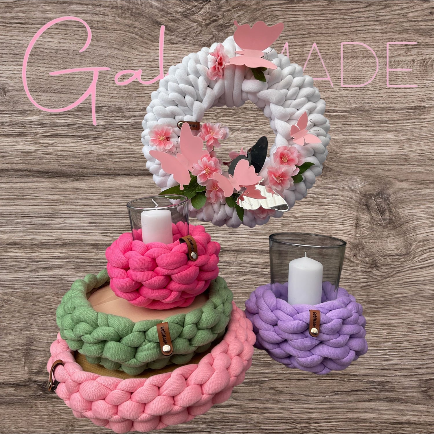 GabiMade zaubert mit handgefertigten Windlichtern eine heimelige Atmosphäre in jeden Raum! Erlebe das warme Gefühl von Strick & Kerzenlicht. In Kombination mit den passenden gestrickten Tabletts oder Vasen zauberst du ein ganz besonderes Ambiente ❣️