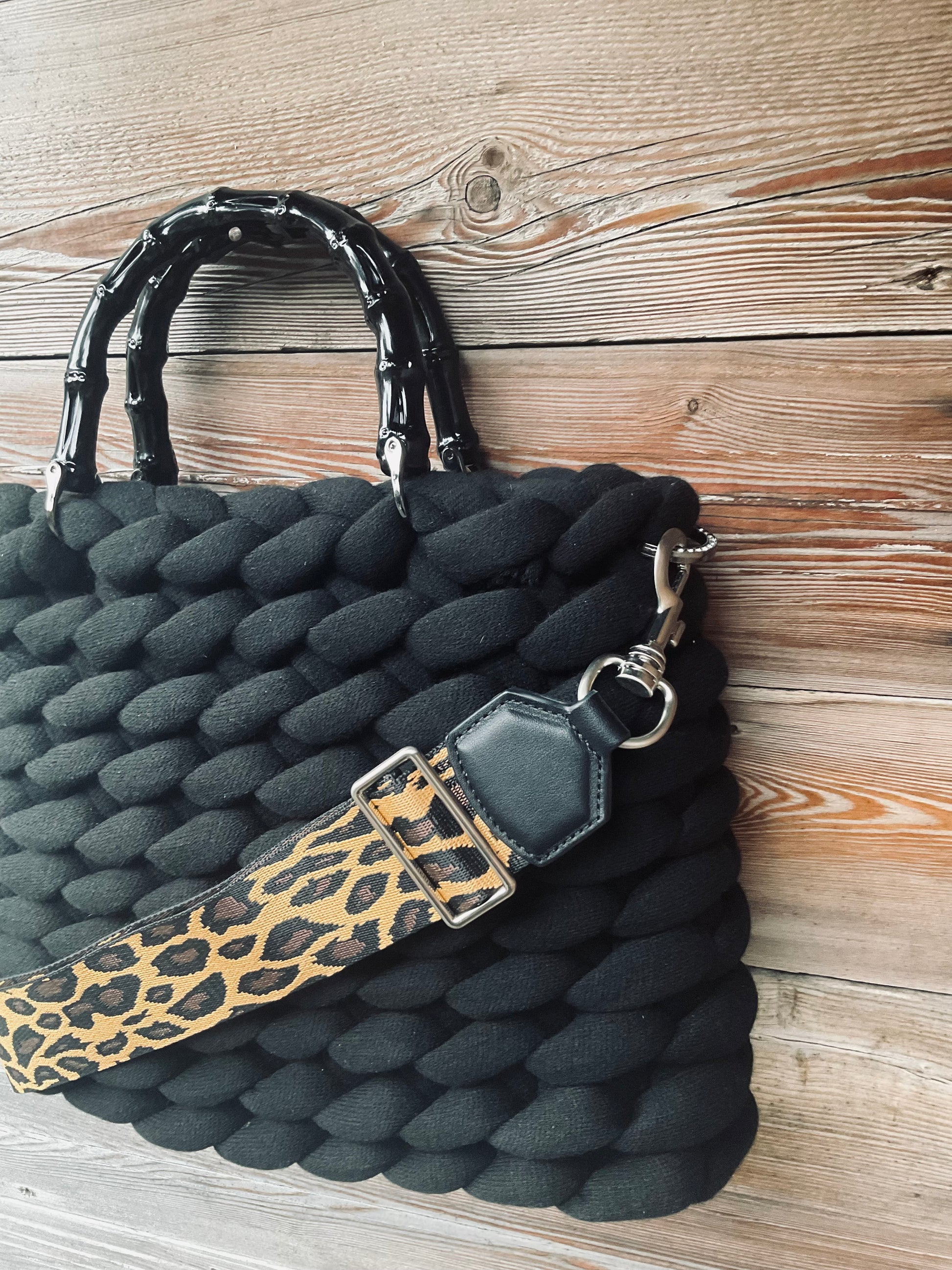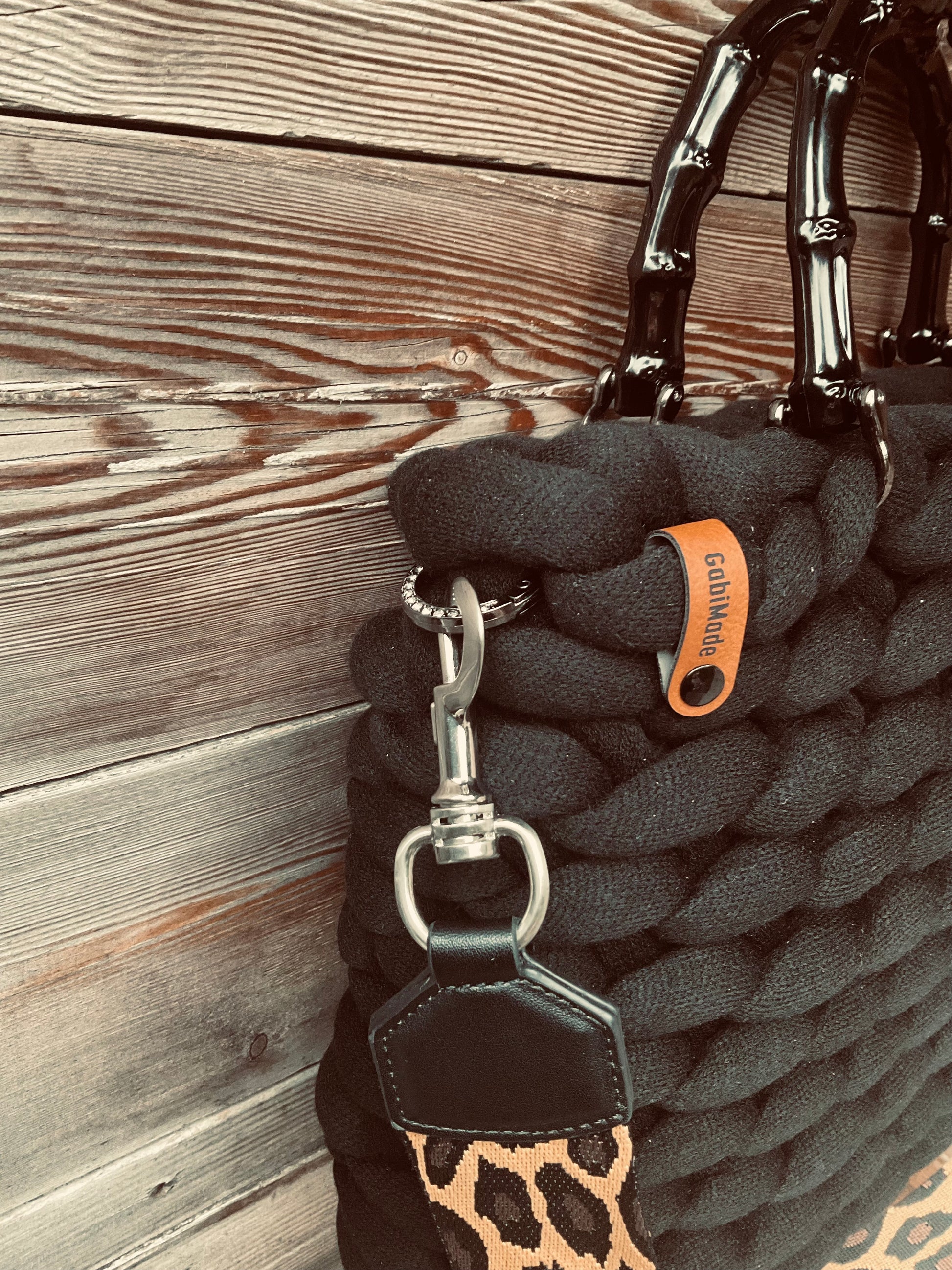 Ausgestattet mit schwarzen Kunststoff Bambusgriffen, Gabimade Logo, passenden Organizer mit Reißverschlussfach, einen stylischen verstellbaren Leo Schulterriemen der an zwei glitzernden Karabinern eingehängt ist 🤩