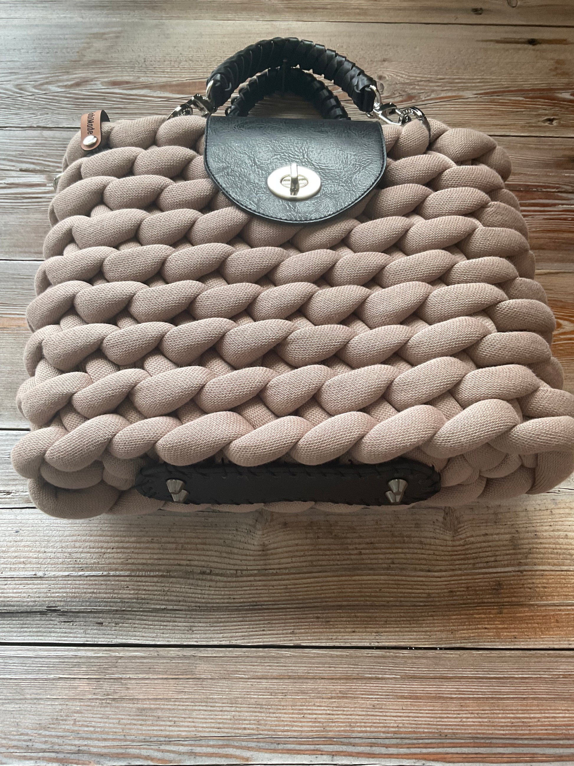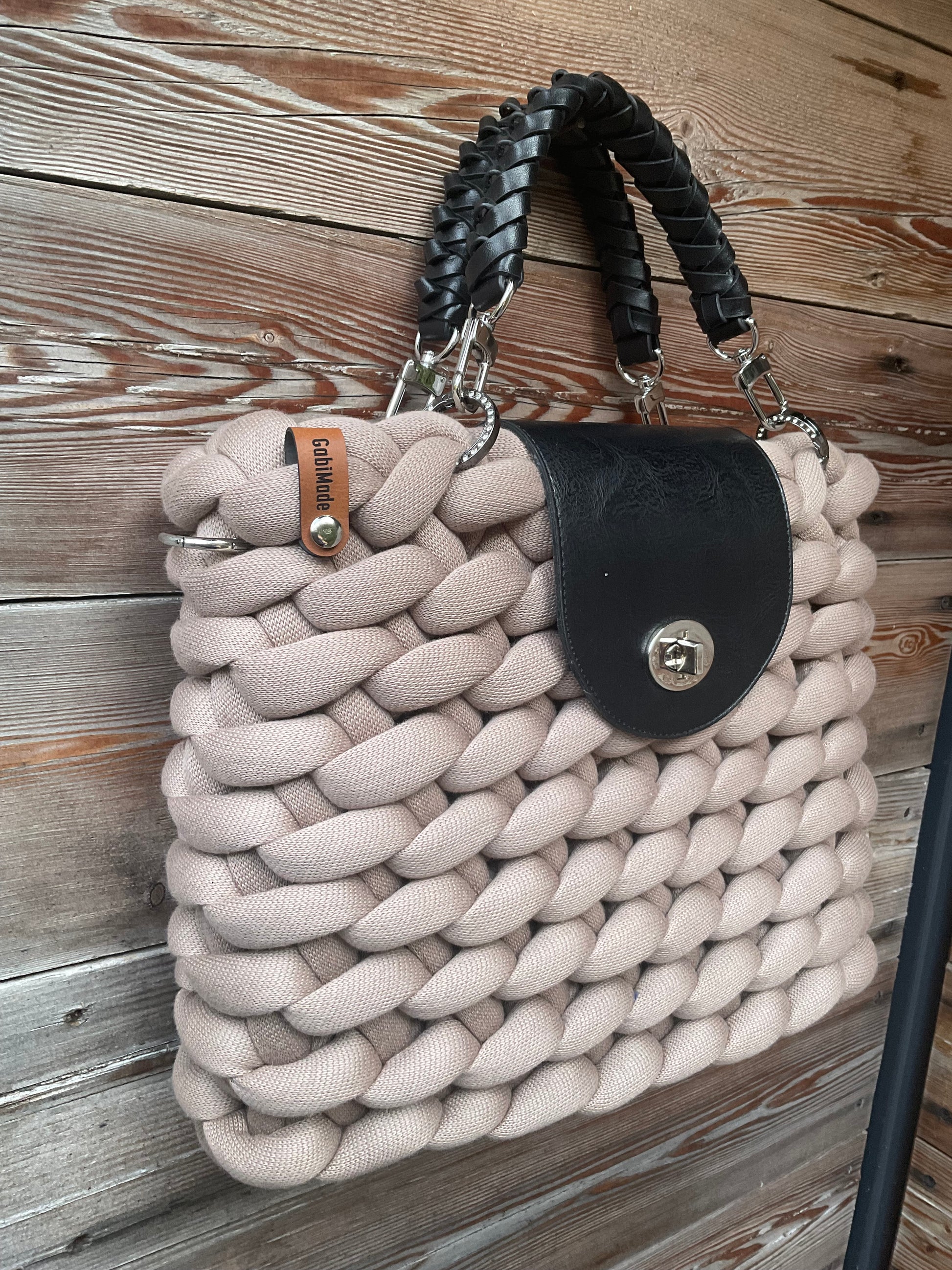 Ausgestattet mit schwarzen geflochtenen Griffen, einem verstellbaren Schultergurt, Gabimade Logo, passenden Organizer, einen Kunstleder Taschenboden und einer Kunstleder Taschenklappe zum verschließen der Tasche.