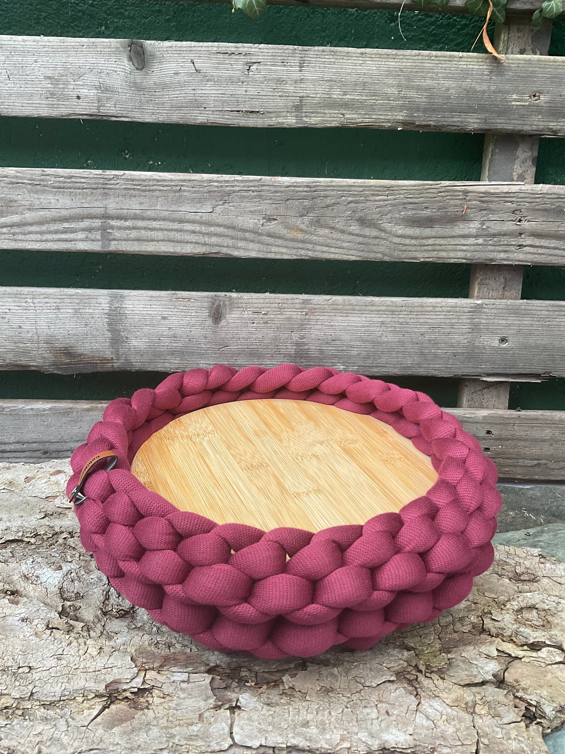 Grobstricktablett mit einer wunderschönen Servierplatte aus Echtholz & GabiMade Logo