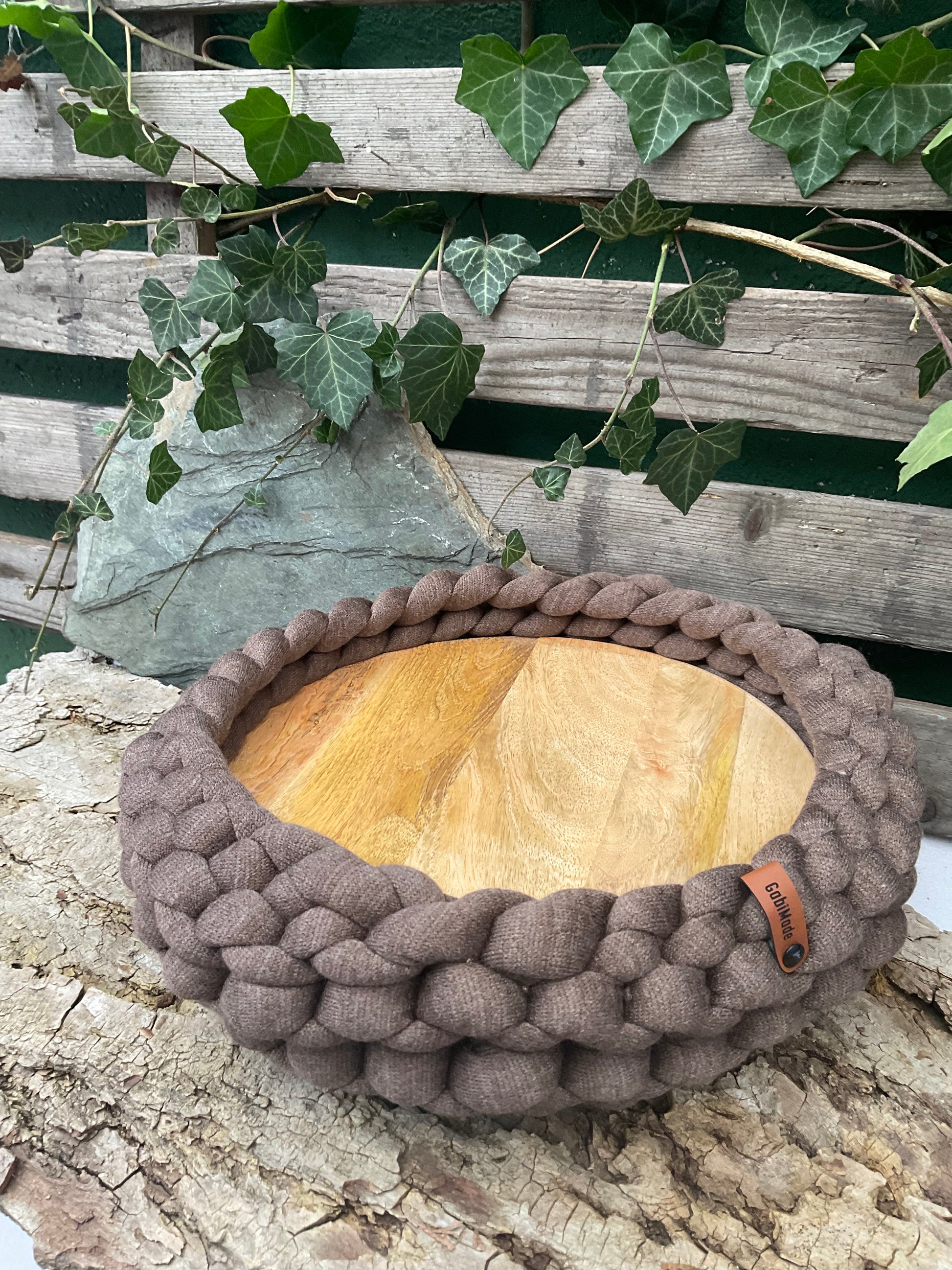 Grobstricktablett mit einer wunderschönen Servierplatte aus Echtholz & GabiMade Logo